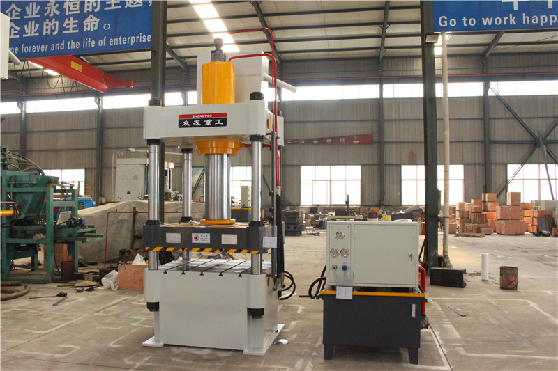 200噸三梁四柱油壓機是山東滕州眾友重工機械設(shè)備有限公司自主研發(fā)生產(chǎn)設(shè)計的,設(shè)備由主機及控制機構(gòu)兩大部分組成,通過管路及電氣裝置聯(lián)系起來構(gòu)成整體。主機部分包括機身、主缸、限程裝置等??刂茩C構(gòu)包括液壓泵站(動力系統(tǒng))、電器箱、移動操縱臺等組成,同時采用大流量插裝閥,在泵的進油口設(shè)吸油濾器,以防雜質(zhì)進入液壓系統(tǒng),以確保油路的正常運行;系統(tǒng)中有油溫油位顯示、空氣濾清等裝置;油箱為鋼板焊接結(jié)構(gòu),底部備有放油和排污的螺塞;插入式液壓專用電機,降低車間噪音
